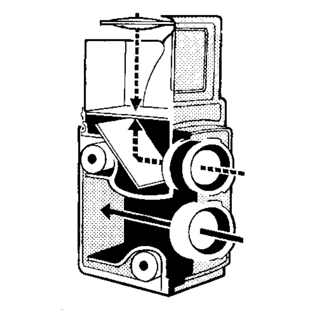 It also has a big drawback, the final image that is projected on the film is not exactly the same as the one seen on the focusing screen, since the two lenses are a few millimeters apart.